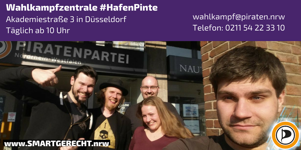 Ich habe die Wahlkampfzentrale der #Piratenpartei NRW bezogen und werde von nun an die größte Zeit meines Tages (und meiner Nacht) dort verbringen. Wenn ihr Fragen habt, ruft an, schreibt eine E-Mail oder kommt einfach mal auf nen Kaffee oder ne Mate vorbei! Die Crew der '#Hafenpinte" heißt euch willkommen! Lets rock und scheiß auf die Umfragewerte! 🤘#Piraten